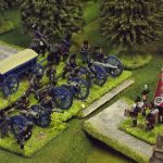 Sébastiani’s II Cavalry Corps laboriously navigated its way along the military road via the bridges at Kroitsch and Nieder-Krayn and up the escarpment on the northern bank of the Neisse to emerge on the plateau with the 2nd Light Cavalry Division and the 2nd Heavy Cavalry Division. Unfortunately, they are still a long way from the left flank of V Corps which is threatened with being overrun by the two Russian Cavalry Divisions. Meanwhile, the 4th Light Cavalry Division, led by the incomparable GdD Exelmans and bringing up the rear of II Cavalry Corps, has encountered Prussian Hussars from Yorck’s Corps advancing from the bridge at Schlaupe, both sides strong out in march column along the wooded roads.