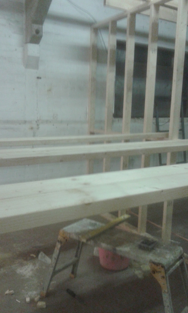 End stud wall going up with the storage area timber joists above.