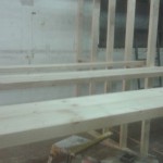 Ceiling joists on the noggins waiting to be lifted up into position.